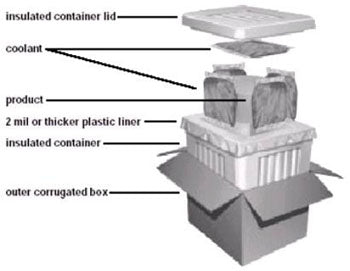 - Arrange products compactly inside the insulated container, allowing space for coolants. Place sufficient amount of coolants on top of and around the products.